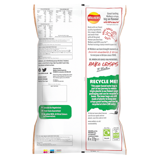 Walkers Baked Flavour Potato Snacks 6 x 22g